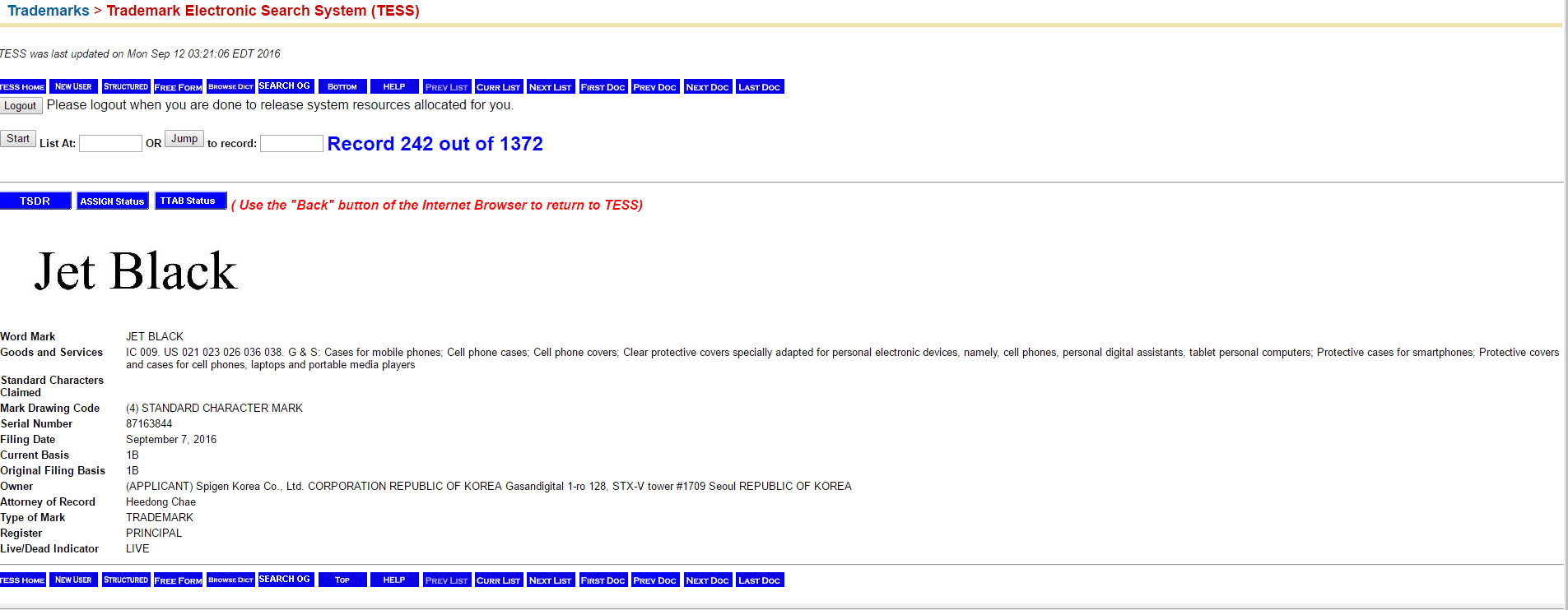 Jet Black Trademark Application