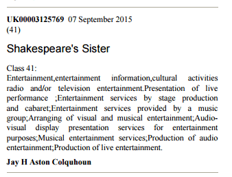 I still can’t watch the  video for Shakespeare’s Sister’s song stay (click here if you can), but some lad has just applied for a Trade Mark for ‘Shakespeare’s sister’ – I’m going to let the girls know!