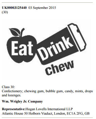 I would have thought this would have been registered AGES ago for Extra Chewing Gum, but apparently now – Eat Drink Chew